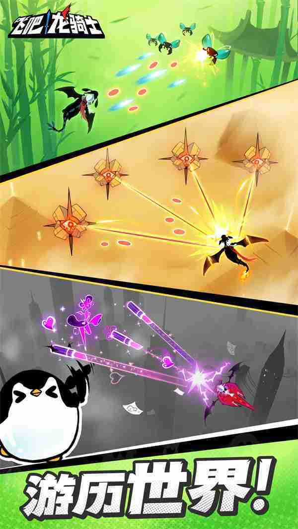 《飞吧龙骑士》是一款集合了飞行弹幕射击、、、、Roguelike要素和挂机养成的休闲手游,,极具创意的吞食子弹反击玩法,,,突破传统飞行射击的刻板限制,,带来了独特的爽快清屏体验。。