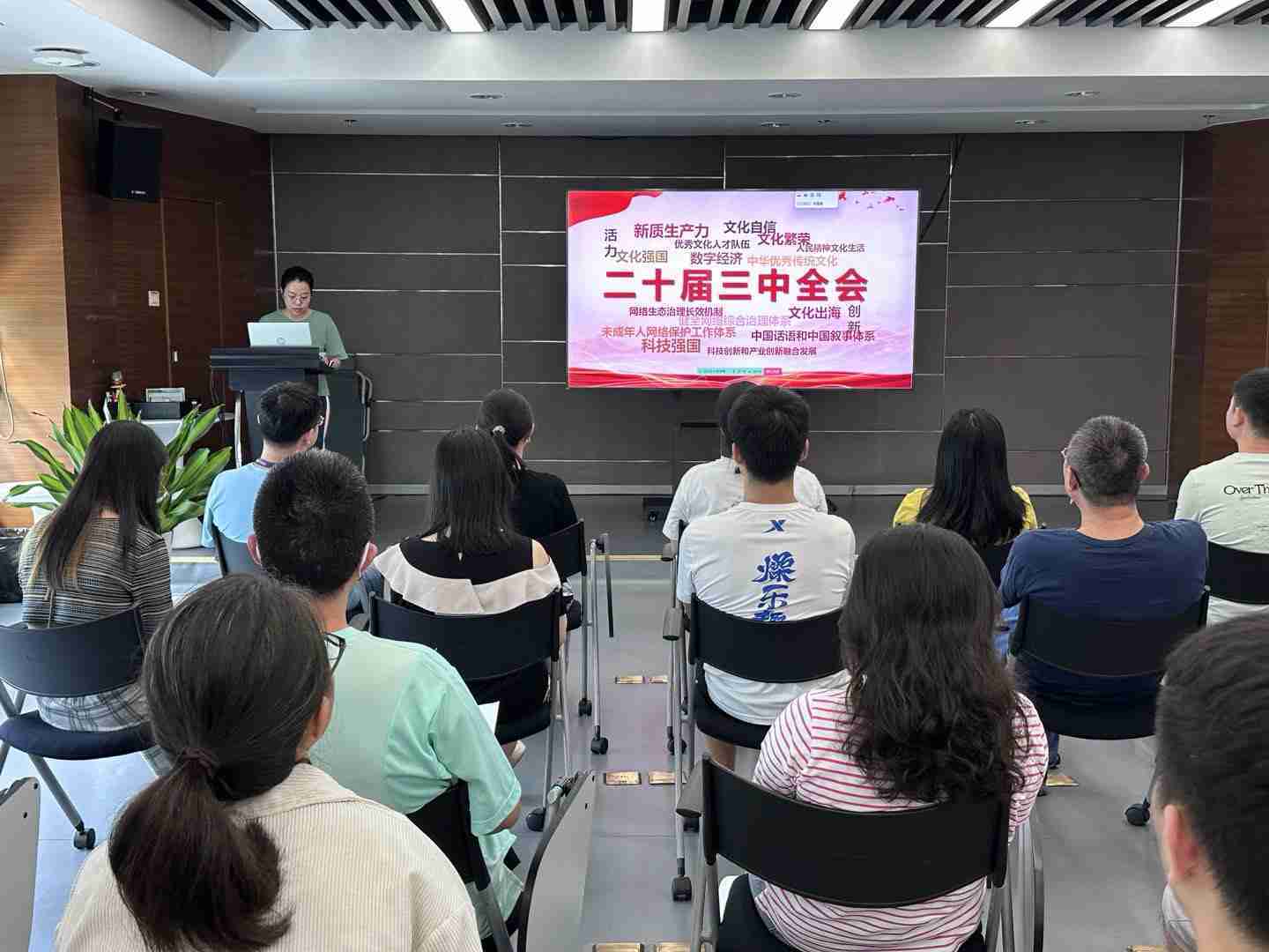 与会人员深入学习《决定》内容。。党的二十届三中全会提出必须增强文化自信,,,发展社会主义先进文化,,弘扬革命文化,,传承中华优秀传统文化,,,加快适应信息技术迅猛发展新形势,,,构建更有效力的国际传播体系,,,,这为广大文化产业工作者指明了奋斗方向。。。