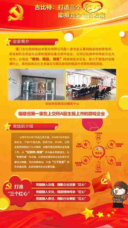 未来公司将全面学习贯彻习近平新时代中国特色社会主义思想和党的十九大精神,,持续强化“互联网+党建”的思维理念,,,以“智慧党建”为主轴,,,,以党组织建设和企业先进文化建设为侧翼,,双向创新驱动,,,引领有信仰、、有情怀、、、有价值的新时代游戏研发运营,,在不断发展壮大的同时,,成为行业的“红色标杆”,,实现党建和企业发展双赢。。