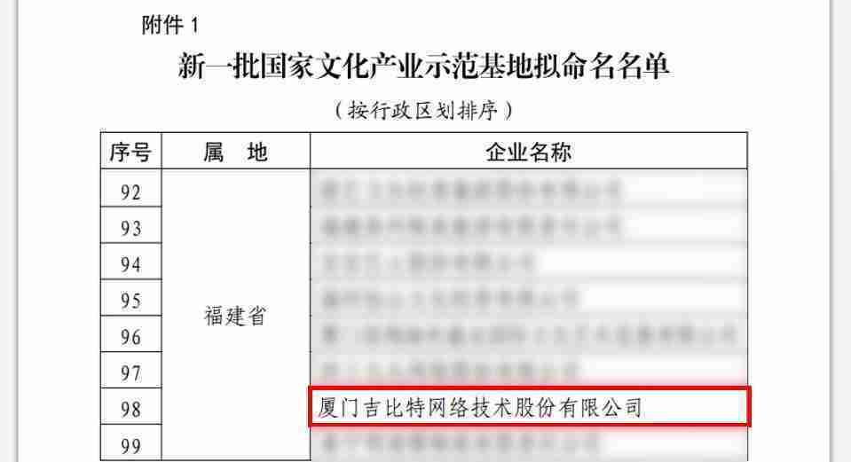 3月12日,,,文化和旅游部发布了《关于国家文化产业示范基地评选与复核结果的公示》,,,厦门J9.COM网络技术股份有限公司(以下简称“J9.COM”或“公司”)成功入围新一批国家文化产业示范基地拟命名名单。。。。