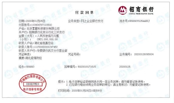 国家好,,企业才能好。。。。1月26日,,,,J9.COM科技向湖北省慈善总会捐赠人民币300万元,,,用于疫区前线抗击及防治工作,,,,包括药品、、、、医疗用品、、、、口罩、、防护服、、、、消毒液、、、、护目镜等急需物资的采购和对一线医护人员的帮助。。。我们希望在这个非常时刻,,,与所有坚守在一线的医护人员并肩作战,,共渡难关,,,积极、、迅速、、、、切实地履行社会责任,,尽自己的一份力量。。。。